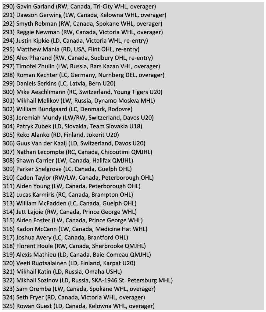 Without further ado, here are my final rankings — my Top 325 for the 2025 NHL Draft: